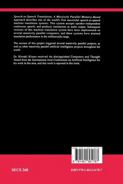 Speech--to--Speech Translation: a Massively Parallel Memory-BasedApproach describes one of the world's first successful speech--to--speech machine translation systems. This system accepts speaker-independent continuous speech, and produces translations as audio output. Subsequent versions of this machine translation system have been implemented on several massively parallel computers, and these systems have attained translation performance in the milliseconds range. The success of this project triggered several massively parallel projects, as well as other massively parallel artificial intelligence projects throughout the world. Dr. Hiroaki Kitano received the distinguished `Computers and Thought Award' from the International Joint Conferences on Artificial Intelligence in 1993 for his work in this area, and that work is reported in this book.