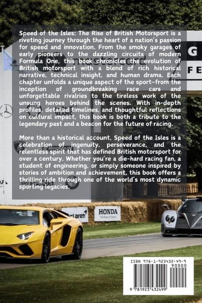 Speed of the Isles: The Rise of British Motorsport is a riveting journey through the heart of a nation's passion for speed and innovation. From the smoky garages of early pioneers to the dazzling circuits of modern Formula One, this book chronicles the evolution of British motorsport with a blend of rich historical narrative, technical insight, and human drama. Each chapter unfolds a unique aspect of the sport-from the inception of groundbreaking race cars and unforgettable rivalries to the tireless work of the unsung heroes behind the scenes. With in-depth profiles, detailed timelines, and thoughtful reflections on cultural impact, this book is both a tribute to the legendary past and a beacon for the future of racing. More than a historical account, Speed of the Isles is a celebration of ingenuity, perseverance, and the relentless spirit that has defined British motorsport for over a century. Whether you're a die-hard racing fan, a student of engineering, or simply someone inspired by stories of ambition and achievement, this book offers a thrilling ride through one of the world's most dynamic sporting legacies.