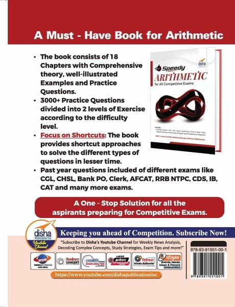 The book Rapid Arithmetic for Competitive Exam with Shortcuts & Tricks is an exceptional book to achieve success in the Arithmetic section of the various Competitive exams. The book is updated with the latest trend of questions (like Number System, SI & CI, Time and Work, Averages, Percentages, Data Analysis etc.) being asked in the various exams. The Unique Selling Point of the book is its strong focus on Shortcuts, Tips & Techniques, which are highlighted with Solved Examples. Written in a very student-friendly manner, the book covers complete theory with suitable illustrations followed by two levels of exercises - each containing an assortment of questions for practice in increasing level of difficulty. The book contains many tricks in not just challenging but also mundane chapters which enable you to dodge the lengthy procedures and arrive at the result quickly, thereby saving your time, thereby increasing your final examination output and score. The book is useful for various exams such as SSC, Banking, Railways, UPSC, Defence and many more entrance exams etc.