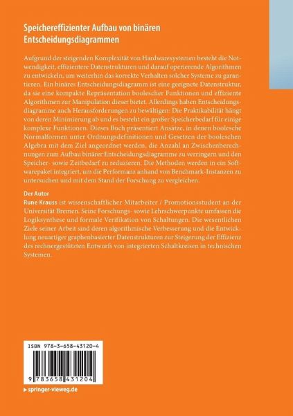 Aufgrund der steigenden Komplexität von Hardwaresystemen besteht die Notwendigkeit, effizientere Datenstrukturen und darauf operierende Algorithmen zu entwickeln, um weiterhin das korrekte Verhalten solcher Systeme zu garantieren. Ein binäres Entscheidungsdiagramm ist eine geeignete Datenstruktur, da sie eine kompakte Repräsentation boolescher Funktionen und effiziente Algorithmen zur Manipulation dieser bietet. Allerdings haben Entscheidungsdiagramme auch Herausforderungen zu bewältigen: Die Praktikabilität hängt von deren Minimierung ab und es besteht ein großer Speicherbedarf für einige komplexe Funktionen. Dieses Buch präsentiert Ansätze, in denen boolesche Normalformen unter Ordnungsdefinitionen und Gesetzen der booleschen Algebra mit dem Ziel angeordnet werden, die Anzahl an Zwischenberechnungen zum Aufbau binärer Entscheidungsdiagramme zu verringern und den Speicher- sowie Zeitbedarf zu reduzieren. Die Methoden werden in ein Softwarepaket integriert, um die Performanz anhand von Benchmark-Instanzen zu untersuchen und mit dem Stand der Forschung zu vergleichen.