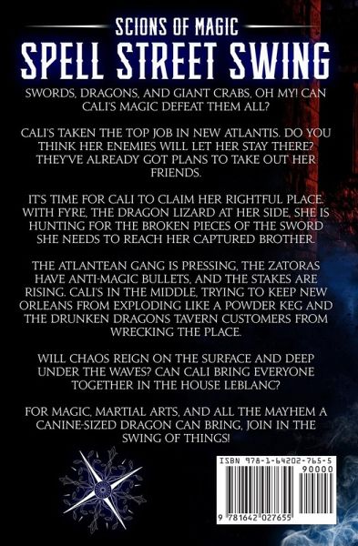 Swords, Dragons, and Giant Crabs, Oh My! Can Cali's magic defeat them all? Cali's taken the top job in New Atlantis. Do you think her enemies will let her stay there? They've already got plans to take out her friends. It's time for Cali to claim her rightful place. With Fyre, the dragon lizard at her side, she is hunting for the broken pieces of the sword she needs to reach her captured brother. The Atlantean gang is pressing, the Zatoras have anti-magic bullets, and the stakes are rising. Cali's in the middle, trying to keep New Orleans from exploding like a powder keg and the Drunken Dragons Tavern customers from wrecking the place. Will chaos reign on the surface and deep under the waves? Can Cali bring everyone together in the House LeBlanc? For magic, martial arts, and all the mayhem a canine-sized dragon can bring, join in the Swing of things! Scroll up and click the Buy Now button and read it today.