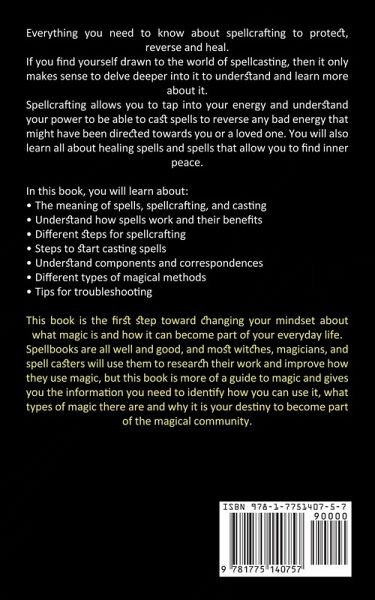 Everything you need to know about spellcrafting to protect, reverse and heal. If you find yourself drawn to the world of spellcasting, then it only makes sense to delve deeper into it to understand and learn more about it. Spellcrafting allows you to tap into your energy and understand your power to be able to cast spells to reverse any bad energy that might have been directed towards you or a loved one. You will also learn all about healing spells and spells that allow you to find inner peace. In this book, you will learn about:The meaning of spells, spellcrafting, and casting Understand how spells work and their benefits Different steps for spellcrafting Steps to start casting spells Understand components and correspondences Different types of magical methods Tips for troubleshooting This book is the first step toward changing your mindset about what magic is and how it can become part of your everyday life. Spellbooks are all well and good, and most witches, magicians, and spell casters will use them to research their work and improve how they use magic, but this book is more of a guide to magic and gives you the information you need to identify how you can use it, what types of magic there are and why it is your destiny to become part of the magical community.