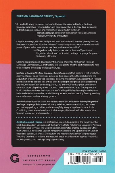 This comprehensive book offers pathbreaking research and practical strategies for Spanish heritage language learning Spelling acquisition and development is often a challenge for Spanish Heritage Language Learners (SHLLs). Instructors, too, struggle to find the best strategies to help their students internalize orthographic rules. Spelling in Spanish Heritage Language Education argues that spelling is not simply the cherry on top of good writing or a mere editing issue; rather, the skills behind the acquisition of spelling lie beneath deeper literacy development. Amàagrave;lia Llombart-Huesca discusses how to address this critical skill, including the cognitive skills underlying spelling, the role of age and bilingualism, and a thorough description of the most common types of spelling errors students make and their causes. Throughout the book, she demonstrates the importance of spelling skills by showing how they can help students improve other crucial literacy aspects, such as reading fluency, reading comprehension, and vocabulary growth. Written for instructors of SHLLs and researchers of SHL education, Spelling in Spanish Heritage Language Education includes guidelines, recommendations, and ideas for creating spelling activities and meaningfully integrating them into curricula. Combining novel research and practical strategies, this is an invaluable resource for Spanish instructors and researchers.