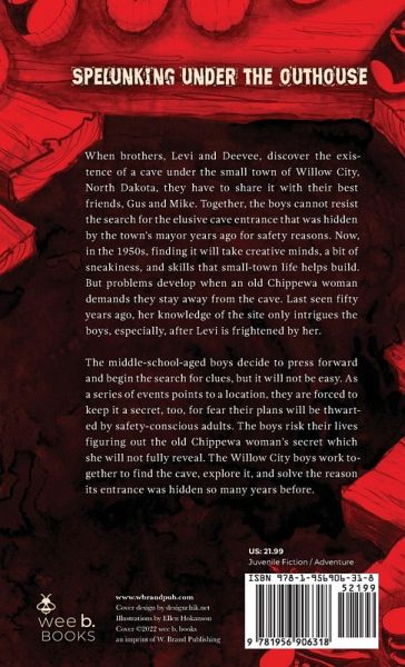 When brothers, Levi and Deevee, discover the existence of a cave under the small town of Willow City, North Dakota, they have to share it with their best friends, Gus and Mike. Together, the boys cannot resist the search for the elusive cave entrance that was hidden by the town's mayor years ago for safety reasons. Now, in the 1950s, finding it will take creative minds, a bit of sneakiness, and skills that small-town life helps build. But problems develop when an old Chippewa woman demands they stay away from the cave. Last seen fifty years ago, her knowledge of the site only intrigues the boys, especially, after Levi is frightened by her. The middle-school-aged boys decide to press forward and begin the search for clues, but it will not be easy. As a series of events points to a location, they are forced to keep it a secret, too, for fear their plans will be thwarted by safety-conscious adults. The boys risk their lives figuring out the old Chippewa woman's secret which she will not fully reveal. The Willow City boys work together to find the cave, explore it, and solve the reason its entrance was hidden so many years before.