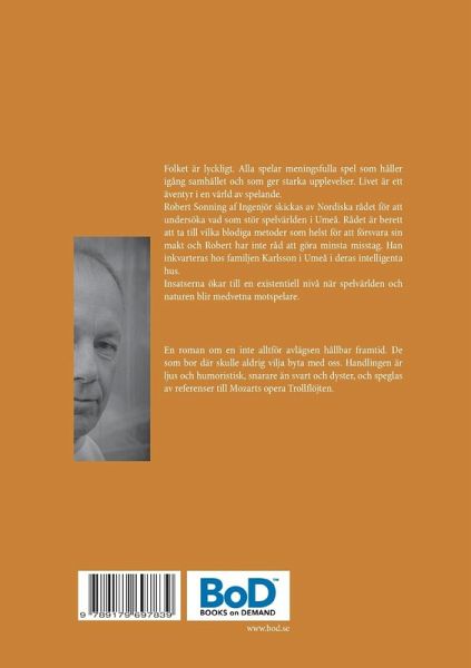 Folket är lyckligt. Alla spelar meningsfulla spel som håller igång samhället och som ger starka upplevelser. Livet är ett äventyr i en värld av spelande. Robert Sonning af Ingenjör skickas av Nordiska rådet för att undersöka vad som stör spelvärlden i Umeå. Huvudmisstänkta är naturterroristerna som inte vill att naturen ska mättas med teknik. Rådet är berett att ta till vilka blodiga metoder som helst för att försvara sin makt och Robert har inte råd att göra minsta misstag. Han inkvarteras hos familjen Karlsson i Umeå i deras intelligenta hus. Insatserna ökar till en existentiell nivå när spelvärlden och naturen blir medvetna motspelare. En roman om en inte alltför avlägsen hållbar framtid. De som bor där skulle aldrig vilja byta med oss. Handlingen är ljus och humoristisk, snarare än svart och dyster, och speglas av referenser till Mozarts opera Trollflöjten.