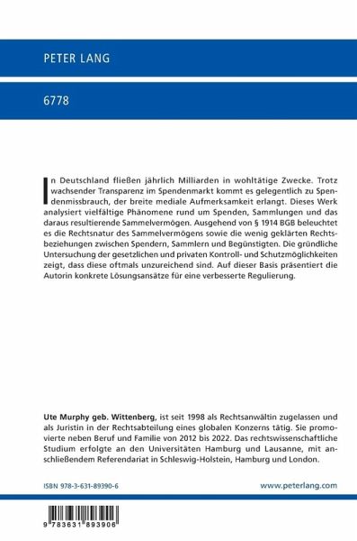 In Deutschland fließen jährlich Milliarden in wohltätige Zwecke. Trotz wachsender Transparenz im Spendenmarkt kommt es gelegentlich zu Spendenmissbrauch, der breite mediale Aufmerksamkeit erlangt. Dieses Werk analysiert tiefgründig Phänomene rund um Spenden, Sammlungen und das daraus resultierende Sammelvermögen. Mit Bezug auf § 1914 BGB beleuchtet es die rechtliche Natur des Sammelvermögens sowie die komplexen, oft wenig geklärten Rechtsbeziehungen zwischen Spendern, Sammlern und Begünstigten. Die gründliche Untersuchung der gesetzlichen und privaten Kontroll- und Schutzmöglichkeiten zeigt, dass diese oftmals unzureichend sind. Auf dieser Basis präsentiert die Autorin konkrete, praxisrelevante Lösungsansätze für eine verbesserte Regulierung.