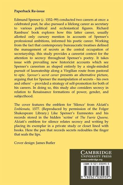 Edmund Spenser (c. 1552–99) conducted two careers at once: a celebrated national poet, he also pursued a lifelong career as secretary to various political and ecclesiastical figures. Richard Rambuss's book explores the ways in which this latter career, usually allotted only a cursory mention in accounts of Spenser's professional and social ambitions, informed his poetic career. The study takes issue with prevailing historicist accounts which see Spenser's careerism as shaped entirely by service to the court and as focused on a single-minded pursuit of laureateship along a Virgilian career route from pastoral to epic. It presents an alternative picture, and argues that for Spenser the manipulation of secrets provided a strategy for self-promotion and a means of measuring his distance from royal and aristocratic power. Spenser's Secret Career throws light on Spenser and on ideas of gender, power and subjecthood in the Renaissance.