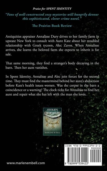 A body, a disappearance, just another hot summer in upstate New York. It’s July when antiquities appraiser Annalisse Drury reaches her family’s small-town farm to consult with the trusted aunt who raised her. She learns that her beloved homestead—the one she expects to inherit—is for sale. While Annalisse reels at the betrayal and her shattered dreams, the Walker Farm ranch manager discovers a corpse in the barn. Officials close the suspected murder scene, and Annalisse seeks refuge with her aunt at Alec Zavos’s rural estate in New York’s Catskill Mountains. Then Aunt Kate vanishes. Annalisse solicits the help of Greek tycoon, Alec Zavos, even though their rocky romance has dissolved into routine separation. What began as hope on Crete nine months ago has eaten away at Annalisse’s hope for a future with him. In Spent Identity, Annalisse and Alec come together for the second time and find themselves in the center of not one mystery, but several. Where is Kate, and why sell her farm now? Is the dead man a coincidence or a clue to the aunt’s disappearance? John Doe’s identity may hold needed answers to solve the puzzle before Kate’s unstable health issues make her rescue impossible. The clock ticks, and a vengeful murderer is in charge…