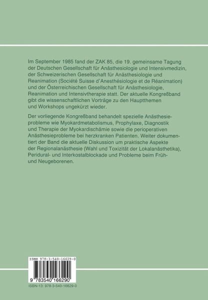 Vom 11.-14.9. 1985 fand in Graz der ZAK 85, die 19. gemeinsame Tagung der Deutschen Gesellschaft fur Anasthesiologie und In tensivmedizin, der Schweizerischen Gesellschaft fUr Anasthesio logie und Reanimation (Societe Suisse d'Anesthesiologie et de Reanimation) und der Osterreichischen Gesellschaft fur Anasthe siologie, Reanimation und Intensivtherapie statt. Die nunmehr vorliegenden KongreBbande geben die ungekurzten wissenschaft lichen Vortrage wieder, die zu den Hauptthemen und Workshops von den zur Teilnahme eingeladenen namhaften deutschsprachi gen und auslandischen Kollegen gehalten wurden. 1m vorliegenden Band werden spezielle Anasthesieprobleme wie Myokardmetabolismus, Prophylaxe, Diagnostik und Thera pie der Myokardischamie sowie die perioperativen Anasthesie probleme bei herzkranken Patienten behandelt. Ein weiteres Hauptthema befaBt sich mit praktischen Aspekten der Regional anasthesie wie Wahl und Toxizitat der Lokalanasthetika, Peridu ral- und Interkostalblockade. Anasthesie- und intensivmedizini sche Probleme beim Friih- und Neugeborenen runden diesen Band spezieller Anasthesieprobleme noch abo Die optimale Mitarbeit der Autoren hat es ermoglicht, daB die KongreBbande nur wenige Monate nach Ende des Kongresses in gedruckter Form vorliegen konnen. Dem Springer-Verlag sei fur die ausgezeichnete Zusammenarbeit und den schnellen Druck ge dankt, der die volle Aktualitat durch eine so friihzeitige Heraus gabe der beim ZAK 85 in Graz gebrachten wissenschaftlichen Ar beiten ermoglicht hat.