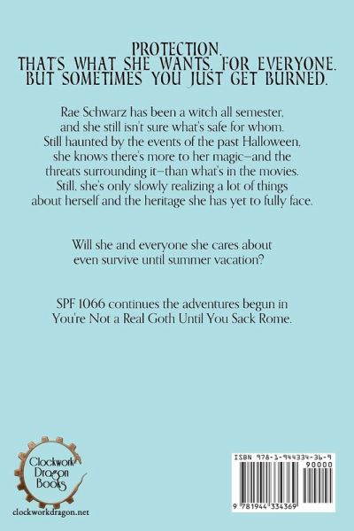 Protection. That's what she wants for everyone. But sometimes you just get burned. Rae Schwarz has been a witch all semester, and she still isn't sure what's safe for whom. Still haunted by the events of the past Halloween, she knows there's more to her magic-and the threats surrounding it-than what's in the movies. Still, she's only slowly realizing a lot of things about herself and the heritage she has yet to fully face. Will she and everyone she cares about even survive until summer vacation? SPF 1066 continues the adventures begun in You're Not a Real Goth Until You Sack Rome.
