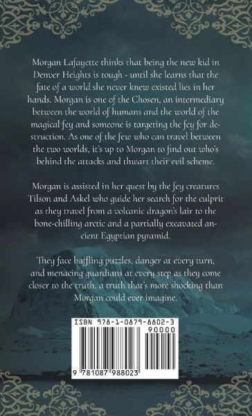 Chronicles of the Chosen is an empowering young adult adventure series about friendship, self-reliance, and the value of believing in yourself. Morgan Lafayette thinks that being the new kid in Denver Heights is tough - until she learns that the fate of a world she never knew existed lies in her hands. Morgan is one of the Chosen, an intermediary between the world of humans and the world of the magical fey and someone is targeting the fey for destruction. As one of the few who can travel between the two worlds, it's up to Morgan to find out who's behind the attacks and thwart their evil scheme. Morgan is assisted in her quest by the fey creatures Tilson and Askel who guide her search for the culprit as they travel from a volcanic dragon's lair to the bone-chilling arctic and a partially excavated ancient Egyptian pyramid. They face baffling puzzles, danger at every turn, and menacing guardians at every step as they come closer to the truth, a truth that's more shocking than Morgan could ever imagine.