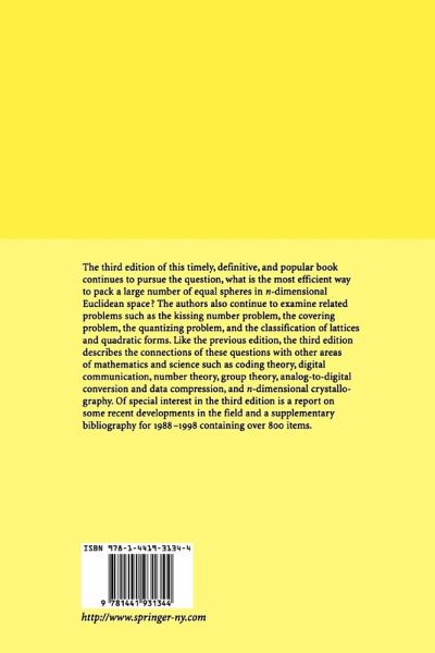 Third Edition J.H. Conway and N.J.A. Sloane Sphere Packings, Lattices and Groups "This is the third edition of this reference work in the literature on sphere packings and related subjects. In addition to the content of the preceding editions, the present edition provides in its preface a detailed survey on recent developments in the field, and an exhaustive supplementary bibliography for 1988-1998. A few chapters in the main text have also been revised."-MATHEMATICAL REVIEWS