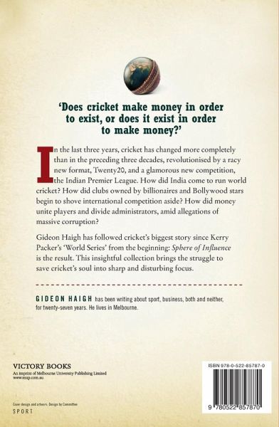 This insightful collection brings the struggle to save cricket's soul into sharp and disturbing focus. In the last three years, cricket has changed more completely than in the preceding three decades, revolutionised by a racy new format, Twenty20, and a glamorous new competition, the Indian Premier League. How did India come to run world cricket? How did clubs owned by billionaires and Bollywood stars begin to shove international competition aside? How did money unite players and divide administrators, amid allegations of massive corruption? Gideon Haigh has followed cricket's biggest story since Kerry Packer's 'World Series' from the beginning: Sphere of Influence is the result. This insightful collection brings the struggle to save cricket's soul into sharp and disturbing focus.