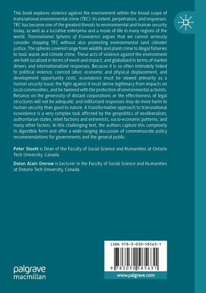 This book explores violence against the environment within the broad scope of transnational environmental crime (TEC): its extent, perpetrators, and responses. TEC has become one of the greatest threats to environmental and human security today, as well as a lucrative enterprise and a mode of life in many regions of the world. Transnational Spheres of Ecoviolence argues that we cannot seriously consider stopping TEC without also promoting environmental (and climate) justice. The spheres covered range from wildlife and plant crime to illegal fisheries to toxic waste and climate crime. These acts of violence against the environment are both localized in terms of event and impact, and globalized in terms of market drivers and internationalized responses. Because it is so often intimately linked to political violence, coerced labor, economic and physical displacement, and development opportunity costs, ecoviolence must be viewed primarily as a human security issue; the fight against it must derive legitimacy from impacts on local communities, and be twinned wth the protection of environmental activists. Reliance on the generosity of distant corporations or the effectiveness of legal structures will not be adequate; and militarized responses may do more harm to human security than good to nature. A transformative approach to transnational ecoviolence is a very complex task affected by the geopolitics of neoliberalism, authoritarian states, rebel factions and extremists, socio-economic patterns, and many other factors. In this challenging text, the authors capture this complexity in digestible form and offer a wide-ranging discussion of commensurate policy recommendations for governments and the general public.
