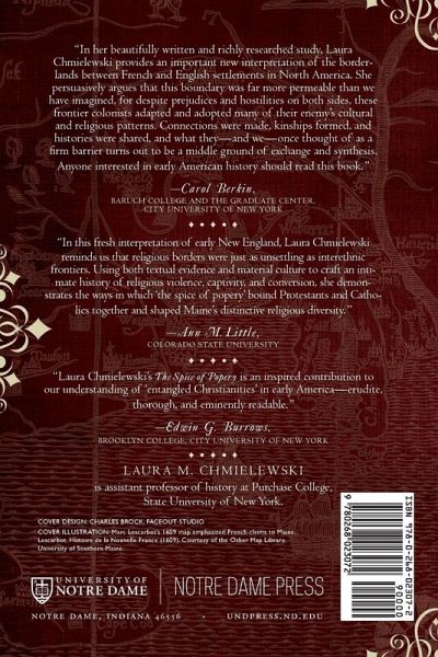 The title for this work comes from the Puritan minister Increase Mather, who used the colorful metaphor to express his concern about the state of English Protestantism. Like many New Englanders, Mather's fears about the creeping influence of French Catholicism stemmed from English conflicts with France that spilled over into the colonial frontiers from French Canada. The most consistently fragile of these frontiers was the Province of Maine, notorious for attracting settlers who had "one foot out the door" of New England Puritanism. It was there that English Protestants and French Catholics came into frequent contact. The Spice of Popery: Converging Christianities on an Early American Frontier shows how, between the volatile years of 1688 to 1727, the persistence of Catholic people and culture in New England's border regions posed consistent challenges to the bodies and souls of frontier Protestants. Taking a cue from contemporary observers of religious culture, as well as modern scholars of early American religion, social history, material culture, and ethnohistory, Laura M. Chmielewski explores this encounter between opposing Christianities on an early American frontier. She examines the forms of lived religion and religious culture-enacted through gestures, religious spaces, objects, and discreet religious expressions-to elucidate the range of experience of its diverse inhabitants: accused witches, warrior Jesuits, unorthodox ministers, indigenous religious thinkers, voluntary and involuntary converts. Chmielewski offers a nuanced perspective of the structured categories of early American Christian religious life, suggesting that the terms "Protestant" and "Catholic" varied according to location and circumstances and that the assumptions accompanying their use had long-term consequences for generations of New Englanders. "Laura Chmielewski's The Spice of Popery is an inspired contribution to our understanding of 'entangled Christianities' in early America-erudite, thorough, and eminently readable." -Edwin G. Burrows, Distinguished Professor of History, Brooklyn College, City University of New York "In her beautifully written and richly researched study, Laura Chmielewski provides an important new interpretation of the borderlands between French and English settlements in North America. She persuasively argues that this boundary was far more permeable than we have imagined, for despite prejudices and hostilities on both sides, these frontier colonists adapted and adopted many of their enemy's cultural and religious patterns. Connections were made, kinships formed, and histories were shared, and what they-and we-once thought of as a firm barrier turns out to be a middle ground of exchange and synthesis. Anyone interested in early American history should read this book." -Carol Berkin, Presidential Professor of History, Baruch College and The Graduate Center, CUNY