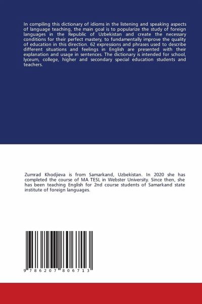 In compiling this dictionary of idioms in the listening and speaking aspects of language teaching, the main goal is to popularize the study of foreign languages in the Republic of Uzbekistan and create the necessary conditions for their perfect mastery, to fundamentally improve the quality of education in this direction. 62 expressions and phrases used to describe different situations and feelings in English are presented with their explanation and usage in sentences. The dictionary is intended for school, lyceum, college, higher and secondary special education students and teachers.