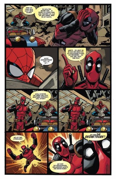 SCHICHT IM SCHACHTEin letztes Mega-Wahnsinns-Crossover hat das Marvel-Universum in eine postapokalyptische Ruine verwandelt! Spider-Man und Deadpool treffen auf die übriggebliebenen Helden im Untergrund - und den großen, unaufhaltsamen Manipulator, der aus einer anderen Dimension stammt und hinter allem steckt. Wollen sie ihn besiegen, müssen die beiden Spinner die vierte Wand zwischen Fiktion und Wirklichkeit endgültig einreißen. Dabei zeichnet sich dieser Comic quasi selbst und führt bis in unsere Realität ...Das große, verrückte Meta-Serienfinale, in Szene gesetzt von Robbie Thompson (VENOM: SPACE KNIGHT), Matt Horak (PUNISHER), Jim Towe (Youngblood) und anderen.FINALAUSGABE!