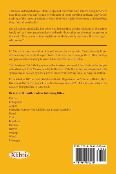 This book is dedicated to all the people out there who hate spiders being anywhere near them and who cant stand the thought of them crawling on them. They know nothing of the types of spiders or what their bite might do to them, and therefore, they think all are deadly! Not all spiders are deadly, but when you believe they are descendants of the spider family and you meet people as described in this book, they are the most dangerous in the world. They can inhabit any neighborhoodhopefully not yours. But then again, who knows?