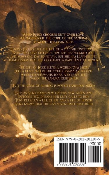 When Keiko chooses duty over love, she wonders if the code of the samurai is worth the heartache. Leaving Edo to save the life of a man she once loved, Keiko must give up everything she has worked for. She vows one day to return, but she has learned the hard lesson that the gods have a dark sense of humor. The city of Kobe seems a world away from Edo, a place where she could disappear, become whoever she wants to be, and leave the way of the samurai behind her. But the code of bushido is not so easily discarded. Even as Keiko makes new friends, new allies, and explores new dreams, her duty calls to her. Torn between a life of joy and a life of honor, Keiko knows that she can never truly have both.