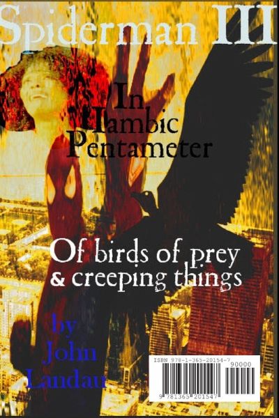 Spiderman is back! With over 70 original black and white photo illustrations, giving it a very comic-book, broadside feel! In light and springy verse that carries through adventure with élan and drama! Now his nemesis the Vulture comes to haunt the town with gory carnage! Can Spiderman defeat this wrathful foe? And at what cost? Peter will pay the ultimate price, give up his very heart to save the city! Come watch a hero weep, and earn his hard-won laurels with a sacrifice. Will he ever be the same? Tune in and see! Once again, poet John Landau translates pop culture into the eternal carnival-speech of verse, taking you on a rollicking ride through the webhead's bumpy life, to set a new adventure on its sail! The sequel to "Of men and spiders sing", the origin-song, and "Of sand and strands, unspindle", facing him with the slippery villain of sand, Spiderman III continues this tangled romp of acrobatics, agile pugilism, and quips and capers!Romance, adventure, and tragedy. For all ages.