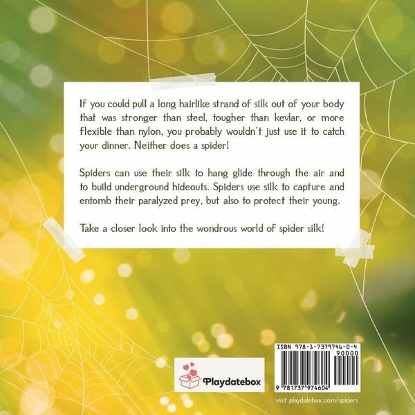 This book isn't about spiders! It's about something equally as fascinating: spiderwebs! When you take a closer look, you'll learn thatscientists have worked for years and spent millions of dollars trying to reproduce the thin, flexible fiber that a spider can simply pull out of its abdomen. spiders build webs in shapes you've never seen before. spiders have evolved to use their silk in all sorts of devious, delightful, creepy, and captivating ways. And once you know how wondrous spider silk is, you'll almost certainly develop a new respect for the little arachnids who create it. This is STEAM learning at its best! Discover how spiders have used their own skills in science, technology, engineering, art, and math to become some of the most fearsome hunters on the planet, and one of Earth's most successful species. Filled with colorful photographs and little-known facts, Spiderwebs and Spider Silk is written for children but will fascinate adults as well. The author has included website access to enrichment activities you can use as part of your school or homeschool curriculum. If you are a grownup (especially a grandparent or parent), you can use the book and website activities to help you connect with a child you love. Take a closer look at spider webs and open your eyes to the wonders of the world all around you!