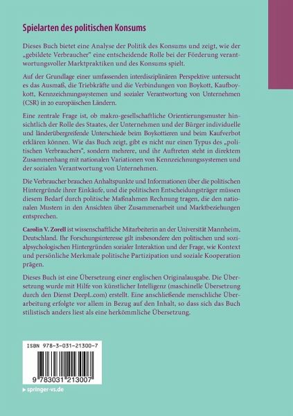 Dieses Buch bietet eine Analyse der Politik des Konsums und zeigt, wie der "gebildete Verbraucher" eine entscheidende Rolle bei der Förderung verantwortungsvoller Marktpraktiken und des Konsums spielt. Auf der Grundlage einer umfassenden interdisziplinären Perspektive untersucht es das Ausmaß, die Triebkräfte und die Verbindungen von Boykott, Kaufboykott, Kennzeichnungssystemen und sozialer Verantwortung von Unternehmen (CSR) in 20 europäischen Ländern. Eine zentrale Frage ist, ob makro-gesellschaftliche Orientierungsmuster hinsichtlich der Rolle des Staates, der Unternehmen und der Bürger individuelle und länderübergreifende Unterschiede beim Boykottieren und beim Kaufverbot erklären können. Wie das Buch zeigt, gibt es nicht nur einen Typus des "politischen Verbrauchers", sondern mehrere, und ihr Auftreten steht in direktem Zusammenhang mit nationalen Variationen von Kennzeichnungssystemen und der sozialen Verantwortung von Unternehmen. Die Verbraucher brauchen Anhaltspunkteund Informationen über die politischen Hintergründe ihrer Einkäufe, und die politischen Entscheidungsträger müssen diesem Bedarf durch politische Maßnahmen Rechnung tragen, die den nationalen Mustern in den Ansichten über Zusammenarbeit und Marktbeziehungen entsprechen.