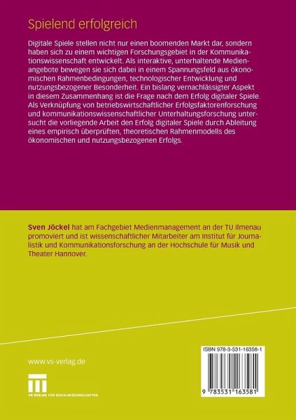 Digitale Spiele stellen nicht nur einen boomenden Markt dar, sondern haben sich zu einem wichtigen Forschungsgebiet in der Kommunikationswissenschaft entwickelt. Als interaktive, unterhaltende Medienangebote bewegen sie sich dabei in einem Spannungsfeld aus ökonomischen Rahmenbedingungen, technologischer Entwicklung und nutzungsbezogener Besonderheit. Ein bislang vernachlässigter Aspekt in diesem Zusammenhang ist die Frage nach dem Erfolg digitaler Spiele. Als Verknüpfung von betriebswirtschaftlicher Erfolgsfaktorenforschung und kommunikationswissenschaftlicher Unterhaltungsforschung untersucht die vorliegende Arbeit den Erfolg digitaler Spiele durch Ableitung eines empirisch überprüften, theoretischen Rahmenmodells des ökonomischen und nutzungsbezogenen Erfolgs.