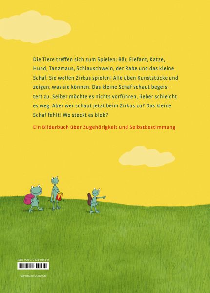 Miriam Zedelius ist die Autorin und zeitglich auch…mehrKatze, Schwein, Hund, Elefant, Bär, Schaf und co treffen sich zum Spielen. Schnell sind sich alle einig, es soll ein Zirkus werden und die Artistenrollen werden verteilt. Doch nur das kleine Schaf möchte lieber nur zuschauen und nicht vor den anderen auftreten. Als die anderen dies nicht zulassen, verschwindet das kleine Schaf klammheimlich.