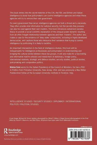 This book delves into the secret histories of the CIA, the FBI, and British and Italian intelligence to study how policymakers can control intelligence agencies and when these agencies will try to remove their own government. ¿ For every government they serve, intelligence agencies are both a threat and a necessity. They often provide vital information for national security, but the secrets they possess can also be used against their own masters. This book introduces subversion paradox theory to provide a social scientific explanation of the unequal power dynamic resulting from an often fraught relationship between agencies and their 'masters'. The author also makes a case for the existence of 'deep state' conspiracies, including in highly developed democracies, and cautions those who denounce their existence that trying to control intelligence by politicizing it is likely to backfire. An important intervention in the field of intelligence studies, this book will be indispensable for intelligence professionals and policymakers in understanding and bridging the cultural divide between these two groups. It will also make for a fascinating and informative read to scholars and researchers of diplomacy, foreign policy, international relations, strategic and defence studies, security studies, political studies, policymaking and comparative politics.