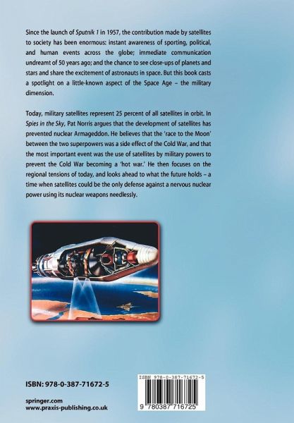 In Spies in the Sky Patrick Norris responds to the occasion of the 50th Anniversary of the dawn of the Space Age - the launch of Sputnik 1 - with a review of the most important historical applications of space science for the benefit of the human race during that half century, focusing particularly on the prevention of nuclear war. The author addresses the oft quoted conclusion that the Moon landings and the 'race to the Moon' between the two superpowers were a side effect of the Cold War, by describing what he believes was the more important event - the use of satellites by military to prevent the Cold War becoming a 'hot war'. In developing the story the author casts a spotlight on a little-known aspect of the Space Age, namely the military dimension. Today military satellites represent 25 percent of all satellites in orbit, and they are just as important now in preventing regional nuclear war as they were in preventing global Armageddon more than 30 years ago.