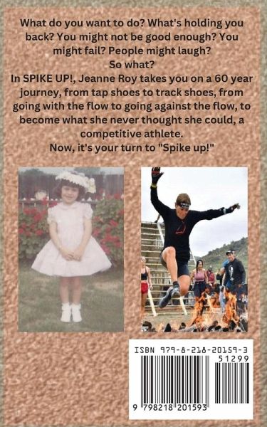What do you want to do? What's holding you back? You might not be good enough? You might fail? People might laugh? So what? In SPIKE UP!, Jeanne Roy takes you on a 60-year journey, from tap shoes to track spikes, from going with the flow to going against the flow, to become what she never thought she could, a competitive athlete. Now, it's your turn to "Spike Up!"
