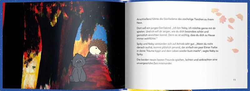 Spiky im Traumland der Berggorillas ist der 2. Teil des erfolgreichen Buchprojekts Spiky's Traumreise nach Afrika, des Berner Kinderbuchautors David Weidner. Seit vielen Jahren setzt sich der junge Pädagoge David Weidner persönlich für Bildung in Uganda ein. Gemeinsam mit dem Afrika Rise e.V., der von Culcha-Candela-Mitglied Johnny Strange gegründet wurde, setzt sich David Weidner aktiv für den Ausbau des EDI Buwere Vocational College ein. Weidner reist regelmässig ehrenamtlich nach Uganda, um beim Auf- und Ausbau der handwerklichen Berufsschule mitzuhelfen. Gemeinsam mit Unterstützer*innen, wie beispielsweise dem FC Thun, organisierte er bereits erfolgreich Sporttage mit wertvollen Materialspenden für die Schüler*innen vor Ort. Als die Pandemie Einzug hielt und der Berner seine Reise nach Uganda nicht antreten konnte, kam Weidner die Idee, in Zusammenarbeit mit dem EDI Buwere Vocational College ein Kinderbuch zu schreiben und gestalten. Wenig Zeit später erschien im November 2021 «Spiky's Traumreise nach Afrika». Nun ist es an der Zeit, dass die Reise des kleinen Igels Spiky weitergeht. In Zusammenarbeit mit der Berufsschule in Uganda kreierte David Weidner neue Illustrationen, die Spiky auf eine Reise ins Traumland der Berggorillas bringen. Nicht nur wird in «Spiky im Traumland der Berggorillas» die Reise vom kleinen Igel erzählt, darüber hinaus enthält das Kinderbuch spannende Informationen und Steckbriefe zu den Tieren, sodass die jungen Leser*innen auch mehr über die Tierwelt Afrikas lernen. Da der Autor ehrenamtlich arbeitet, und mit dem WeMakeIt-Projekt Spenden für die Produktion des zweiten Teils der Geschichte gesammelt wurden, können sämtliche Erlöse, die durch den Verkauf des Buches entstehen, vollumfänglich dem Edi Buwere Vocational College in Uganda zugutekommen.