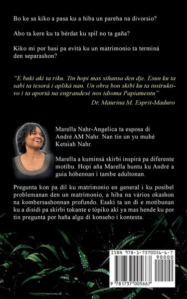 Bo ke sa kiko a pasa ku a hiba un pareha na divorsio? Abo ta kere ku ta bèrdat ku spil no ta gaña? Kiko mi por hasi pa evitá ku un matrimonio ta terminá den separashon? "E boeki aki ta riku. Tin hopi mas siñansa den dje. Esun ku ta sabí ta tesorá i apliká nan. Un obra bon skibí ku ta instruktivo i ta aportá na engrandesé nos idioma Papiamentu"