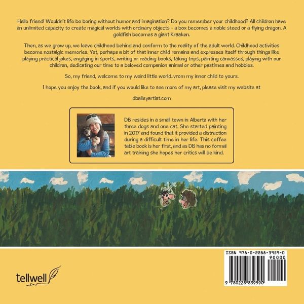 Hello friend! Wouldn't life be boring without humor and imagination? Do you remember your childhood? All children have an unlimited capacity to create magical worlds with ordinary objects - a box becomes a noble steed or a flying dragon. A goldfish becomes a giant Kraaken. Then, as we grow up, we leave childhood behind and conform to the reality of the adult world. Childhood activities become nostalgic memories. Yet, perhaps a bit of that inner child remains and expresses itself through things like playing practical jokes, engaging in sports, writing or reading books, taking trips, painting canvasses, playing with our children, dedicating our time to a beloved companion animal or other pastimes and hobbies. So, my friend, welcome to my weird little world...from my inner child to yours. I hope you enjoy the book, and if you would like to see more of my art, please visit my website at dbaileyartist.com