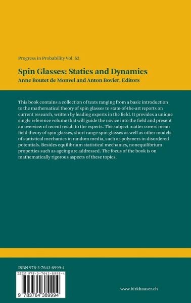 Over the last decade, spin glass theory has turned from a fascinating part of t- oretical physics to a ?ourishing and rapidly growing subject of probability theory as well. These developments have been triggered to a large part by the mathem- ical understanding gained on the fascinating and previously mysterious "Parisi solution" of the Sherrington-Kirkpatrick mean ?eld model of spin glasses, due to the work of Guerra, Talagrand, and others. At the same time, new aspects and applications of the methods developed there have come up. The presentvolumecollects a number of reviewsaswellas shorterarticlesby lecturers at a summer school on spin glasses that was held in July 2007 in Paris. These articles range from pedagogical introductions to state of the art papers, covering the latest developments. In their whole, they give a nice overview on the current state of the ?eld from the mathematical side. The review by Bovier and Kurkova gives a concise introduction to mean ?eld models, starting with the Curie-Weiss model and moving over the Random Energymodels up to the Parisisolutionof the Sherrington-Kirkpatrikmodel. Ben Arous and Kuptsov present a more recent view and disordered systems through the so-called local energy statistics. They emphasize that there are many ways to look at Hamiltonians of disordered systems that make appear the Random Energy model (or independent random variables) as a universal mechanism for describing certain rare events. An important tool in the analysis of spin glasses are correlation identities.