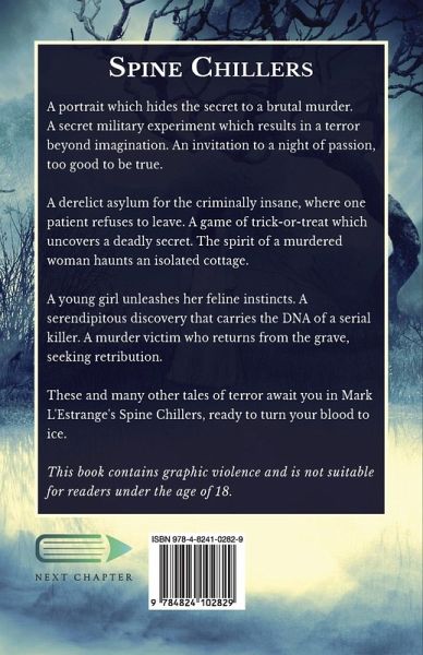 A portrait which hides the secret to a brutal murder. A secret military experiment which results in a terror beyond imagination. An invitation to a night of passion, too good to be true. A derelict asylum for the criminally insane, where one patient refuses to leave. A game of trick-or-treat which uncovers a deadly secret. The spirit of a murdered woman haunts an isolated cottage. A young girl unleashes her feline instincts. A serendipitous discovery that carries the DNA of a serial killer. A murder victim who returns from the grave, seeking retribution. These and many other tales of terror await you in Mark L'Estrange's Spine Chillers, ready to turn your blood to ice. This book contains graphic violence and is not suitable for readers under the age of 18.