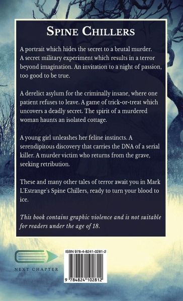 A portrait which hides the secret to a brutal murder. A secret military experiment which results in a terror beyond imagination. An invitation to a night of passion, too good to be true. A derelict asylum for the criminally insane, where one patient refuses to leave. A game of trick-or-treat which uncovers a deadly secret. The spirit of a murdered woman haunts an isolated cottage. A young girl unleashes her feline instincts. A serendipitous discovery that carries the DNA of a serial killer. A murder victim who returns from the grave, seeking retribution. These and many other tales of terror await you in Mark L'Estrange's Spine Chillers, ready to turn your blood to ice. This book contains graphic violence and is not suitable for readers under the age of 18.