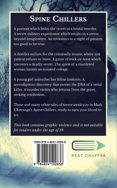 A portrait which hides the secret to a brutal murder. A secret military experiment which results in a terror beyond imagination. An invitation to a night of passion, too good to be true. A derelict asylum for the criminally insane, where one patient refuses to leave. A game of trick-or-treat which uncovers a deadly secret. The spirit of a murdered woman haunts an isolated cottage. A young girl unleashes her feline instincts. A serendipitous discovery that carries the DNA of a serial killer. A murder victim who returns from the grave, seeking retribution. These and many other tales of terror await you in Mark L'Estrange's Spine Chillers, ready to turn your blood to ice. This book contains graphic violence and is not suitable for readers under the age of 18.