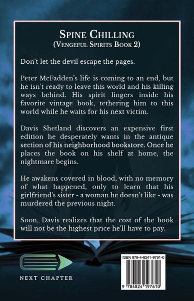 Don't let the devil escape the pages. Peter McFadden's life is coming to an end, but he isn't ready to leave this world and his killing ways behind. His spirit lingers inside his favorite vintage book, tethering him to this world while he waits for his next victim. Davis Shetland discovers an expensive first edition he desperately wants in the antique section of his neighborhood bookstore. Once he places the book on his shelf at home, the nightmare begins. He awakens covered in blood, with no memory of what happened, only to learn that his girlfriend's sister - a woman he doesn't like - was murdered the previous night. Soon, Davis realizes that the cost of the book will not be the highest price he'll have to pay.