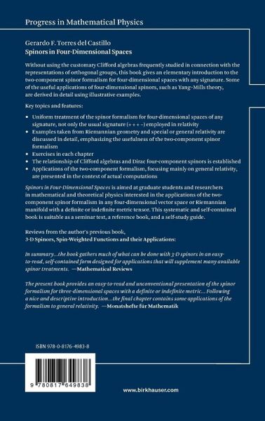 Spinors in Four-Dimensional Spaces is aimed at graduate students and researchers in mathematical and theoretical physics interested in the applications of the two-component spinor formalism in any four-dimensional vector space or Riemannian manifold with a definite or indefinite metric tensor. This systematic and self-contained book is suitable as a seminar text, a reference book, and a self-study guide.