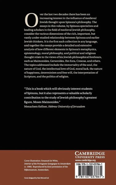 Over the last two decades there has been an increasing interest in the influence of medieval Jewish thought upon Spinoza's philosophy. The essays in this volume, by Spinoza specialists and leading scholars in the field of medieval Jewish philosophy, consider the various dimensions of the rich, important, but vastly under-studied relationship between Spinoza and earlier Jewish thinkers. It is the first such collection in any language, and together the essays provide a detailed and extensive analysis of how different elements in Spinoza's metaphysics, epistemology, moral philosophy, and political and religious thought relate to the views of his Jewish philosophical forebears, such as Maimonides, Gersonides, Ibn Ezra, Crescas, and others. The topics addressed include the immortality of the soul, the nature of God, the intellectual love of God, moral luck, the nature of happiness, determinism and free will, the interpretation of Scripture, and the politics of religion.