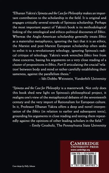 This book analyzes three often-debated questions of Spinoza's legacy: was Spinoza a religious thinker? How should we understand Spinoza's mind-body doctrine? What meaning can be given to Spinoza's notions - such as salvation, beatitude, and freedom - which are seemingly incompatible with his determinism, his secularism, and his critique of religion. Through a close reading of often-overlooked sections from Spinoza's Ethics, Elhanan Yakira argues that these seemingly conflicting elements are indeed compatible, despite Spinoza's iconoclastic meanings. Yakira argues that Ethics is an attempt at providing a purely philosophical - as opposed to theological - foundation for the theory of value and normativity.