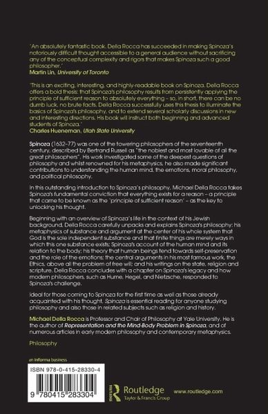 'In his Spinoza, Michael Della Rocca has performed a service for those seeking a thorough, accessible and engaging overview of Spinoza's life and philosophy. ...unquestionably the best general introduction to Spinoza's overall philosophy since Henry Allison's Benedict de Spinoza: An Introduction, published over twenty years ago.' - Times Literary Supplement