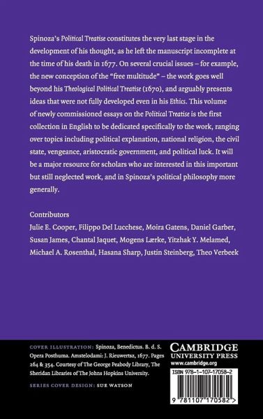 Introduction Yitzhak Y. Melamed and Hasana Sharp; 1. What is real about 'ideal constitutions'? - Spinoza on political explanation Michael A. Rosenthal; 2. Statesmen vs. philosophers: experience and method in Spinoza's Political Treatise Julie E. Cooper; 3. The condition of human nature: Spinoza's account of the ground of human action in the Tractatus Politicus Moira Gatens; 4. Politically mediated affects: envy in Spinoza's Tractatus Politicus Susan James; 5. Longing (desiderium) for vengeance as the foundation of the commonwealth Chantal Jacquet; 6. Family quarrels and mental harmony: Spinoza's Oikos-Polis analogy Hasana Sharp; 7. Spinoza on national religion Mogens Laerke; 8. Religion and the civil state in the Tractatus Politicus Daniel Garber; 9. Spinoza on aristocratic and democratic government Theo Verbek; 10. When is having too much power harmful? - Spinoza on political luck Yitzhak Y. Melamed; 11. Spinoza and political absolutism Justin Steinberg; 12. The revolutionary foundation of political modernity: Machiavelli, Spinoza, and constituent power Filippo Del Lucchese.