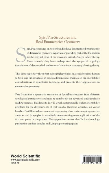 Spin/Pin-structures on vector bundles have long featured prominently in differential geometry, in particular providing part of the foundation for the original proof of the renowned Atiyah-Singer Index Theory. More recently, they have underpinned the symplectic topology foundations of the so-called real sector of the mirror symmetry of string theory. This semi-expository three-part monograph provides an accessible introduction to Spin- and Pin-structures in general, demonstrates their role in the orientability considerations in symplectic topology, and presents their applications in enumerative geometry. . Part I contains a systematic treatment of Spin/Pin-structures from different topological perspectives and may be suitable for an advanced undergraduate reading seminar. This leads to Part II, which systematically studies orientability problems for the determinants of real Cauchy-Riemann operators on vector bundles. Part III introduces enumerative geometry of curves in complex projective varieties and in symplectic manifolds, demonstrating some applications of the first two parts in the process. Two appendices review the ¿ech cohomology perspective on fiber bundles and Lie group covering spaces.