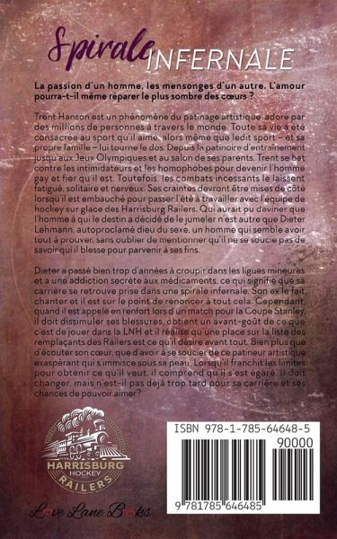 La passion d'un homme, les mensonges d'un autre. L'amour pourra-t-il même réparer le plus sombre des c¿urs ? Trent Hanson est un phénomène du patinage artistique, adoré par des millions de personnes à travers le monde. Toute sa vie a été consacrée au sport qu'il aime, alors même que ledit sport - et sa propre famille - lui tourne le dos. Depuis la patinoire d'entraînement jusqu'aux Jeux Olympiques et au salon de ses parents, Trent se bat contre les intimidateurs et les homophobes pour devenir l'homme gay et fier qu'il est. Toutefois, les combats incessants le laissent fatigué, solitaire et nerveux. Ses craintes devront être mises de côté lorsqu'il est embauché pour passer l'été à travailler avec l'équipe de hockey sur glace des Harrisburg Railers. Qui aurait pu deviner que l'homme à qui le destin a décidé de le jumeler n'est autre que Dieter Lehmann, autoproclamé dieu du sexe, un homme qui semble avoir tout à prouver, sans oublier de mentionner qu'il ne se soucie pas de savoir qui il blesse pour parvenir à ses fins. Dieter a passé bien trop d'années à croupir dans les ligues mineures et a une addiction secrète aux médicaments, ce qui signifie que sa carrière se retrouve prise dans une spirale infernale. Son ex le fait chanter et il est sur le point de renoncer à tout cela. Cependant, quand il est appelé en renfort lors d'un match pour la Coupe Stanley, il doit dissimuler ses blessures, obtient un avant-goût de ce que c'est de jouer dans la LNH et il réalise qu'une place sur la liste des remplaçants des Railers est ce qu'il désire avant tout. Bien plus que d'écouter son c¿ur, que d'avoir à se soucier de ce patineur artistique exaspérant qui s'immisce sous sa peau. Lorsqu'il franchit les limites pour obtenir ce qu'il veut, il comprend qu'il s'est égaré. Il doit changer, mais n'est-il pas déjà trop tard pour sa carrière et ses chances de pouvoir aimer ?