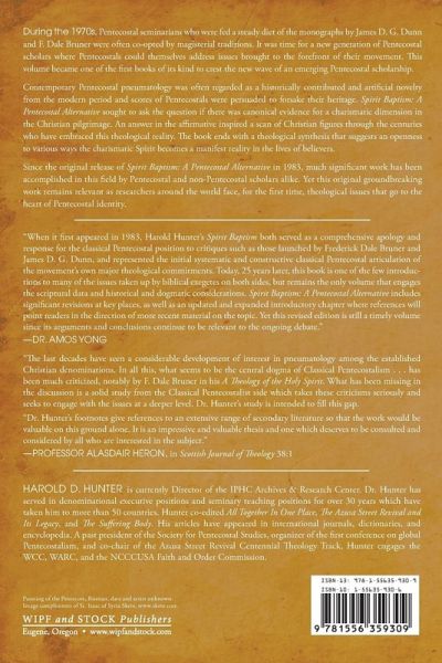 During the 1970s, Pentecostal seminarians who were fed a steady diet of the monographs by James D.G. Dunn and F. Dale Bruner were often co-opted by magisterial traditions. It was time for a new generation of Pentecostal scholars where Pentecostals could themselves address issues brought to the forefront of their movement. This volume became one of the first books of its kind to crest the new wave of an emerging Pentecostal scholarship. Contemporary Pentecostal pneumatology was often regarded as a historically contributed and artificial novelty from the modern period and scores of Pentecostals were persuaded to forsake their heritage. Spirit Baptism: A Pentecostal Alternative sought to ask the question if there was canonical evidence for a Charismatic dimension in the Christian pilgrimage. An answer in the affirmative inspired a scan of Christian figures through the centuries who have embraced this theological reality. The book ends with a theological synthesis that suggests an openness to various ways the Charismatic Spirit becomes a manifest reality in the lives of believers. Since the release of Spirit Baptism: A Pentecostal Alternative in 1983, much significant work has been accomplished in this field by Pentecostal and non-Pentecostal scholars alike. Yet this original groundbreaking work remains relevant as researchers around the world face for the first time theological issues that go to the heart of Pentecostal identify.