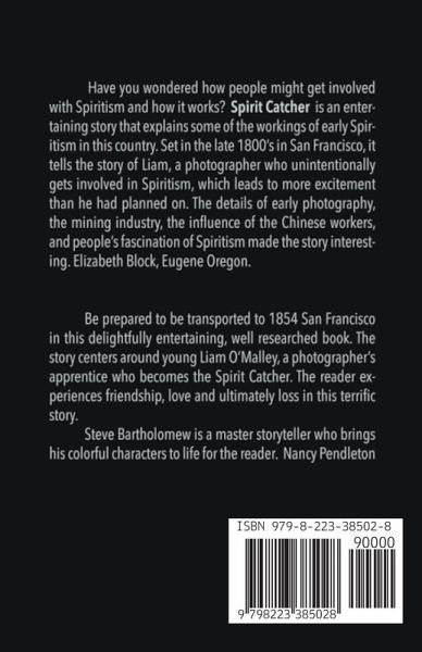 Liam O'Malley was just looking for an honest job. The California Gold Rush wasn't paying off for him, and he was tired of living in tents. In San Francisco he did find employment, but he wasn't sure how honest. He found himself assistant to a Daguerreotype photographer who specialized in photographing ghosts and departed spirits. Of course the pictures were all fake. Liam became sure of that when he learned to make the pictures himself. He didn't know he was about to get involved with Prince Susslov, self-appointed Witch Hunter. Or with Delia, daughter of an escaped slave and the most fascinating woman he'd ever met.