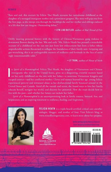 In Spirit of a Hummingbird, Felicia Thai Heath, the daughter of Vietnamese and Chinese immigrants who met in the United States, gives us a disquieting, eventful memoir based on her early childhood on the run with her father-a notorious Vietnamese kingpin and escaped convict-and her conflicted mother. Clever and mature beyond her age, young Felicia experienced poverty and witnessed abuse as her dysfunctional family bounced around in the United States and Canada. Amid all the tumult and terror, she found ways to love her family, educate herself, navigate her world, and discover her potential. Now she must decide how to live with the past-and whether her future can include her father. Spirit of a Hummingbird is an uncompromising look at family trauma, betrayal, fear, and helplessness and an inspiring testament to resilience, healing, and forgiveness.