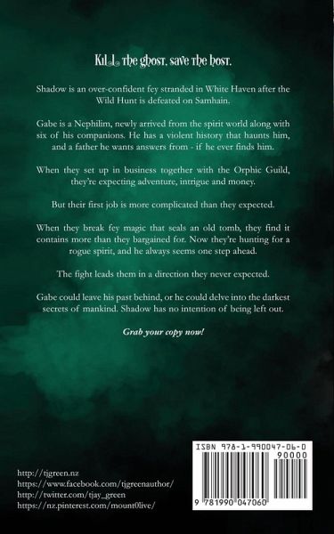 Kill the ghost, save the host. Shadow is an over-confident fey stranded in White Haven after the Wild Hunt is defeated on Samhain. Gabe is a Nephilim, newly arrived from the spirit world along with six of his companions. He has a violent history that haunts him, and a father he wants answers from - if he ever finds him. When they set up in business together with the Orphic Guild, they're expecting adventure, intrigue and money. But their first job is more complicated than they expected. When they break fey magic that seals an old tomb, they find it contains more than they bargained for. Now they're hunting for a rogue spirit, but he always seems one step ahead. The fight leads them in a direction they never expected. Gabe could leave his past behind, or he could delve into the darkest secrets of mankind. Shadow has no intention of being left out. If you enjoy action, intrigue, humour, and dark secrets that won't stay buried, you'll love this first in series spin-off from the White Haven Witches. Grab your copy now!